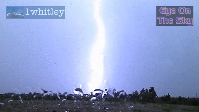 ![]() This is the return stroke from the close CG pictured above. Moments after the lightning bolt, a puff of grey smoke rose into the air from just behind the trees. |