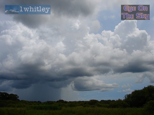 ![]() By early afternoon, cumulus was building, and the first shafts of rain could be seen collapsing out of the clouds. . |
