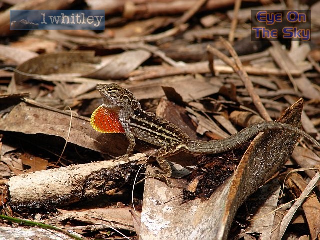 ![]() We believe this was a type of Gecko, and we managed to snap it just as it was flexing the colourful skin under its neck. We have similar critters around our pool in Bradenton! . |