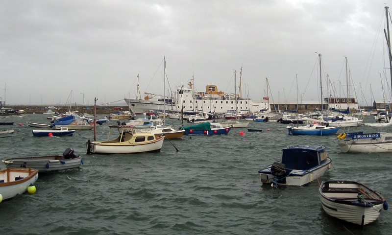 III takes shelter from the storm in Penzance Harbour |