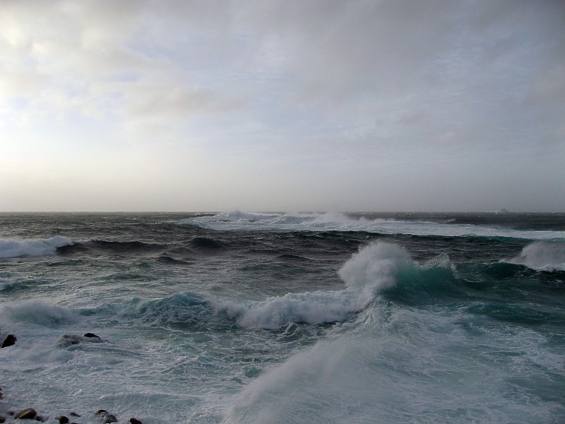the height of the storm, a boiling sea in Sennen Cove, Cornwall |