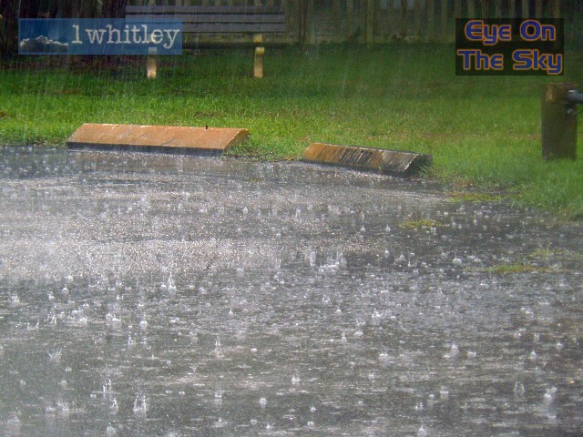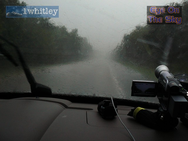 Now under the cold front squall-line, torrential rain batters down and cloud-to-ground lightning flashes close by. . |