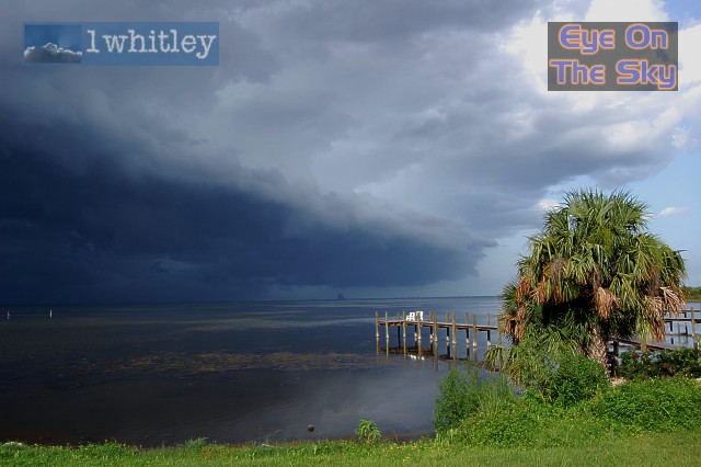 We managed to stop by a waterside bar, which had amazing views towards Kennedy Space Center and the huge building in which NASA's orbiter is attached to its fuel tanks prior to making its way out to the launch pad. When we first arrived, temperatures were in the mid-90s and the breeze was light. Within minutes, the gust front arrived, the bar had to close its shutters, and the temperture plummeted again! . |